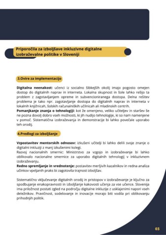 spodbujanje enakopravnosti in izboljšanje kakovosti učenja za vse učence. Slovenija